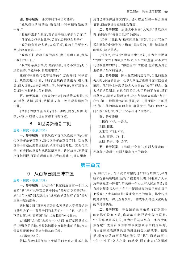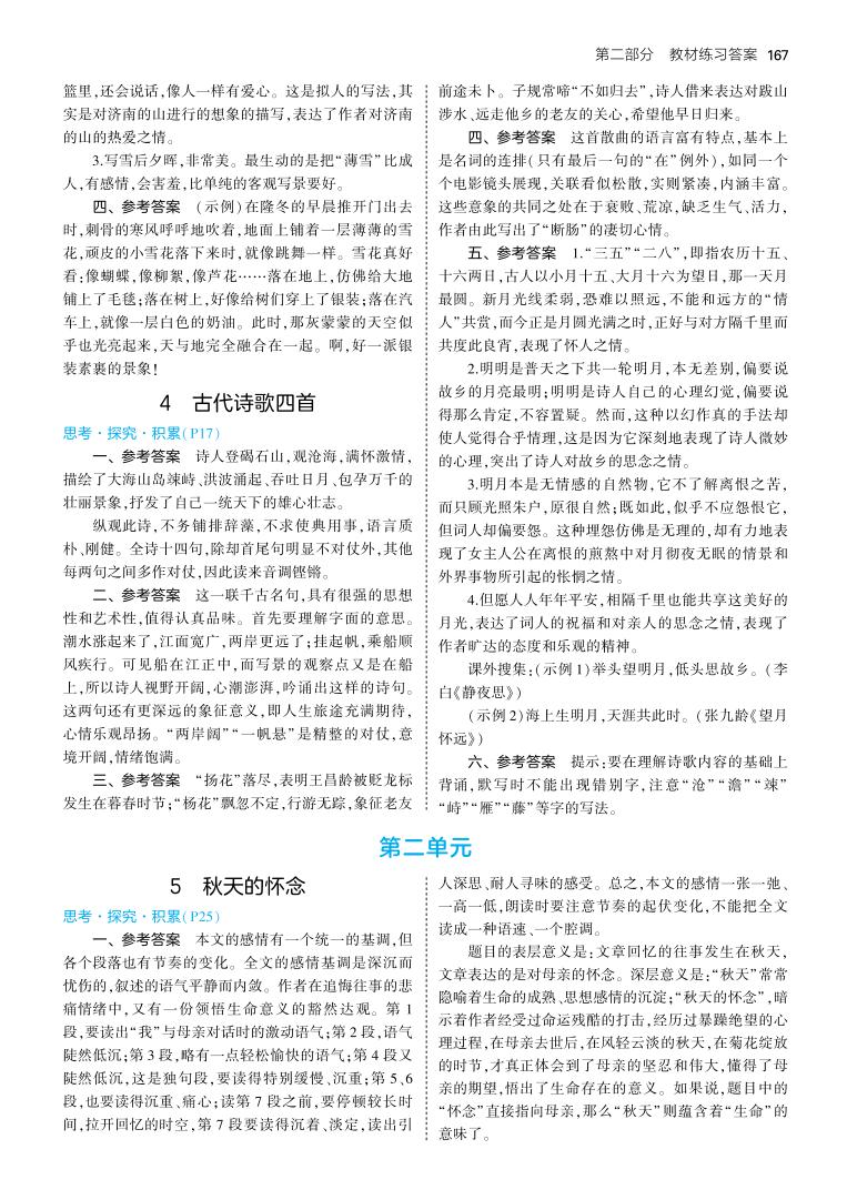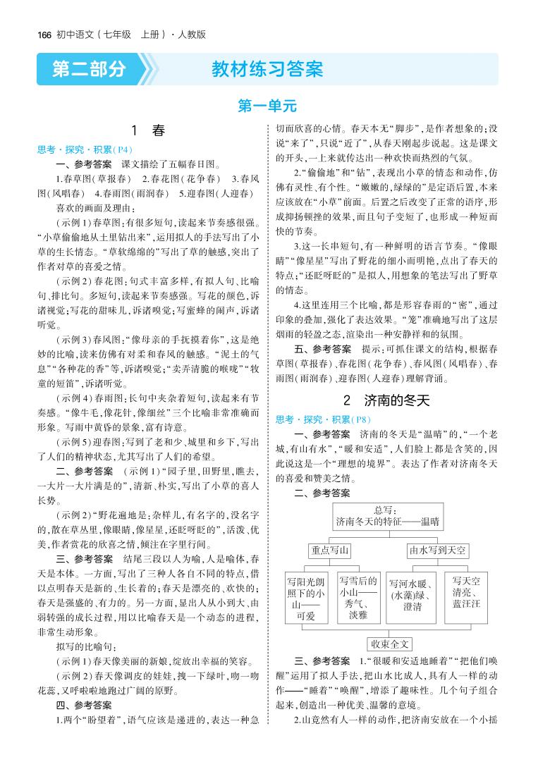24秋新教材部编人教版初中语文七上人教版-教材练习答案