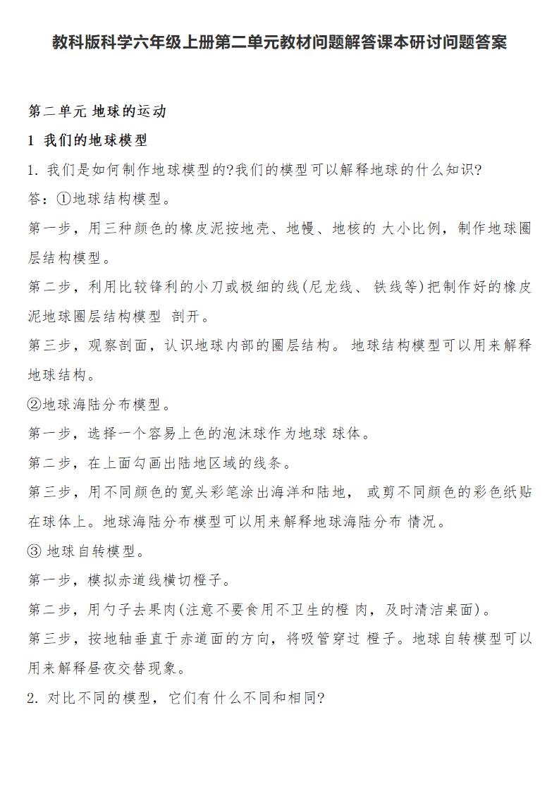 教科版科学六年级上册第二单元教材问题解答课本研讨问题答案,仅提供网盘下载,如介意,请不要下载。