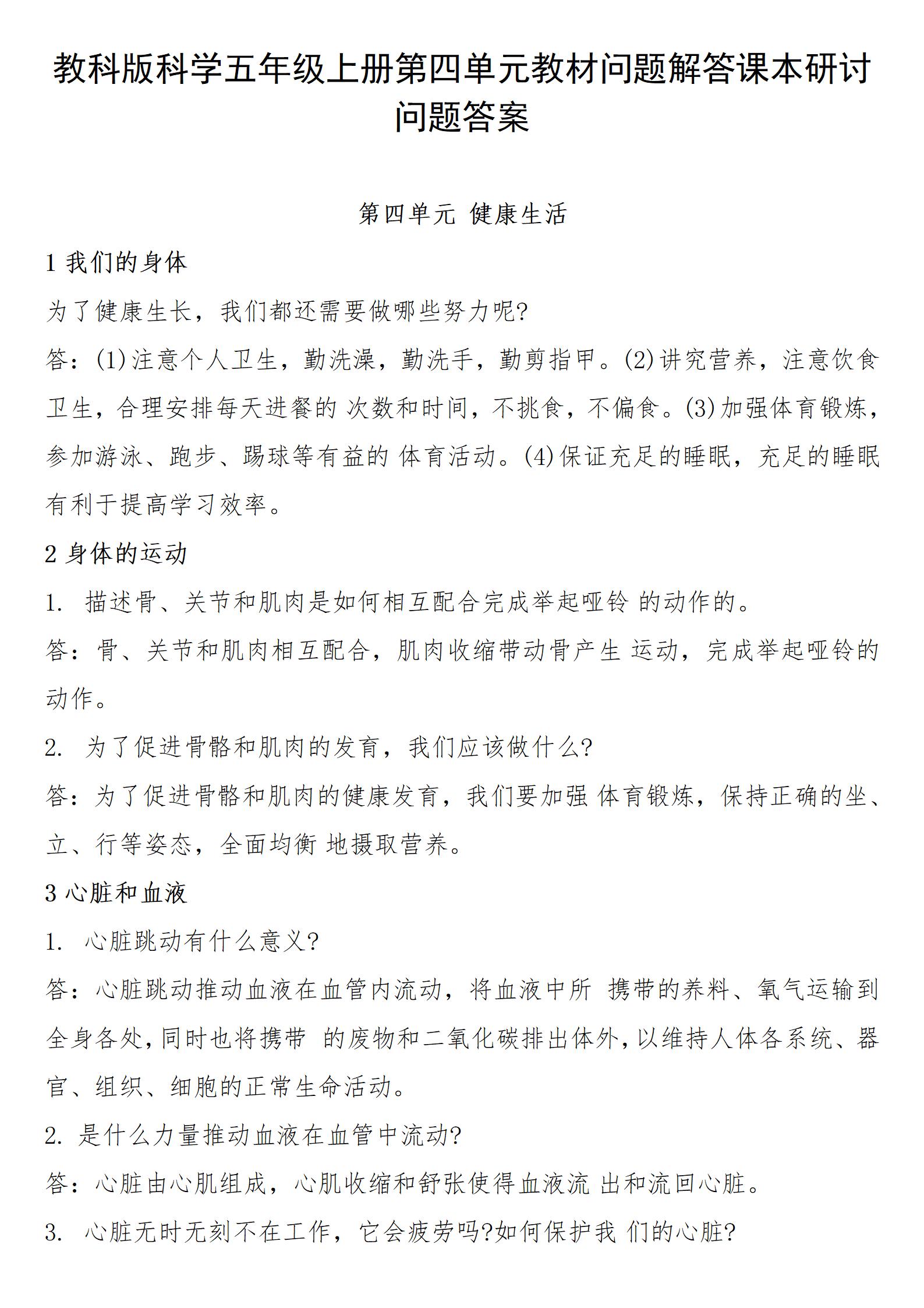 教科版科学五年级上册第四单元教材问题解答课本研讨问题答案,仅提供网盘下载,如介意,请不要下载。