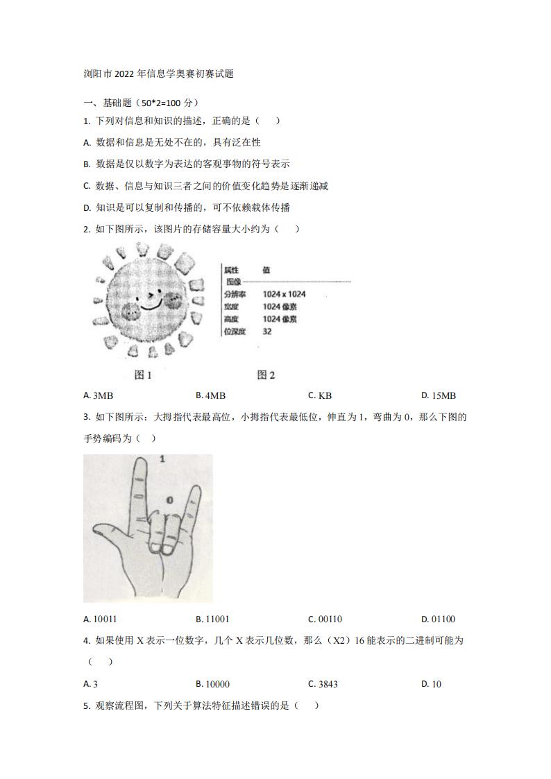 浏阳市2022年信息学奥赛初赛试题,仅提供网盘下载,如介意,请不要下载。