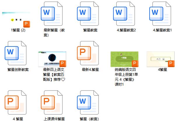新部编版四年级上册《语文》繁星课件打包【ppt版】7个+教案【word版】6个