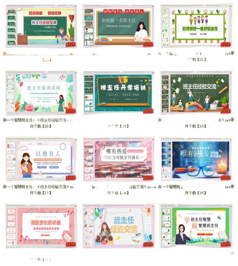中小学班主任经验交流ppt共25份,此资料包为转载自课件站{kjzhan},仅提供网盘下载,如介意,请不要下载。